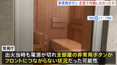 1: ななしさん@発達中 2025/12/17(水) 16:22:57.88 ● BE:977790669-2BP(2000) 店内の全非常用ボタンがフロントにつながらない状況だった可能性 東京・赤坂“個室サウナ店夫婦死亡火災” 警視庁 東京・赤坂の個室サウナ店で夫婦が死亡した火事で、火事が起きた際、店の全ての部屋の非常用ボタンがフロントにつながらない状況だった可能性があることがわかりました。 この火事は、おととい午後0時半ごろ、港区・赤坂の個室サウナ店で背もたれなどが焼け、室内で倒れていた川崎市の会社経営・松田政也さん(36)と妻でネイリストの陽子さん(37)が死亡したものです。 サウナ室内にはフロントにつながる非常用ボタンが設置されていましたが、警視庁が現場検証を行った結果、フロントにある非常用ボタンの受信盤の電源が切れていたことが捜査関係者への取材でわかりました。 警視庁は、出火当時も電源が切れていて、店の全ての部屋の非常用ボタンがフロントにつながらない状況だった可能性があるとみています。 また、港区の保健所によりますと、旅館業法では非常用ボタンは検査の対象ではなく、サウナ店が2022年7月に旅館業の許可を取得し、おととし4月に保健所の検査を受けた際も設備に問題はなかったということです。 警視庁はきょうも現場検証を行うなどして、当時の状況を調べています。…