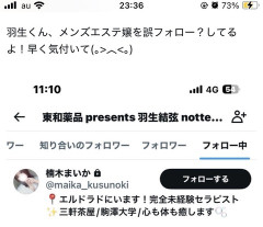 【悲報】羽生公式Twitter、メンエス嬢をフォローwwwwwwwwwww