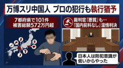 1: 名無し 2025/12/17(水) 16:30:45.88 ID:SuripocCN41 大阪・関西万博会場や奈良市の商店街などで日本人観光客らの財布をすり取ったとして、窃盗の罪に問われた中国籍の無職、田紅波被告(41)に対し、奈良地裁は拘禁刑2年6月、執行猶予4年の有罪判決を言い渡した。 裁判官は「常習性があり悪質」と指摘する一方、日本国内で前科がない点などを考慮したとした。 被告は「日本人は防犯意識が低いので、生活費を稼ぐためにやった」と供述。警察の調べでは、7都府県で計101件、総額約572万円相当のすりを繰り返していた。 産経新聞(ソース元引用) ■要約 ・万博会場などでスリを繰り返した中国人に執行猶予付きの有罪判決。 ・犯行は7都府県で101件、被害総額572万円に上る「プロの犯行」。 ・「日本人は防犯意識が低いからやった」と、日本人をカモにした動機。 ・裁判官は「悪質」と認めつつ、「国内での前科なし」を理由に温情判決。 ■解説 100件以上の余罪があり、500万円以上を盗み出した明らかな「職業的犯罪者」に対し、執行猶予をつけて野に放つとは、日本の司法は一体どこを向いているのか。 「日本人はチョロい」と公言して入国し、万博という国家イベントの会場を狩場にした人間を、「初犯だから」という理由で刑務所に送らない判決は、事実上の「やり得」を推奨しているに等しい。 この判決を聞いた中国の犯罪組織は、「日本なら100件やっても刑務所に入らなくて済む」と歓喜し、さらなる「スリ・窃盗ツアー」を計画するだろう。 日本の治安の良さは、性善説と相互信頼で成り立っているが、それを逆手に取る外国人犯罪者に対しては、本来日本人に対する以上の厳罰をもって臨まなければ抑止力にならない。 執行猶予ですぐに釈放・帰国させるのではなく、日本の刑務所で罪を償わせ、二度と日本の地を踏ませない措置が必要だ。 奈良地裁の判断は、国民の財産よりも犯罪者の人権を優先した悪例として記憶されるべきだ。 高市首相「従来の立場超えたと受け止められ反省」 存立危機発言巡り 赤坂で夫婦が死亡した高級個室サウナ店(月額39万円)がこちら 日本「レーダー照射問題!」中国「1週間経過!(12/6発生」自衛隊「事実関係を各国説明(重要」中国軍「日本が悪い!(印象操作」高市政権「中国制裁!(不当廉売関税」→…