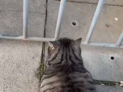 【おい!】 1匹のネコが柵の向こう側に行きたくて待っていた。私が扉を開けてあげる。さぁ通りな♪ → すると…