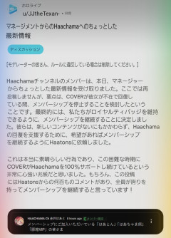 引用元: 58: Vtuberまとめ2025/12/18(木) 09:21:14.64 はあちゃま休止中だけど集金は続けるってマジ? 83: Vtuberまとめ2025/12/18(木) 09:22:26.59 >>58 どういうこと? 89: Vtuberまとめ2025/12/18(木) 09:22:45.80 >>58 ロアちゃんもまだメンシ続いてるんだっけ? 92: Vtuberまとめ2025/12/18(木) 09:22:56.52 >>58 はあ豚は喜んでるみたいじゃん いいことだな😐 95: Vtuberまとめ2025/12/18(木) 09:23:07.39 >>58 うおおおおおおカバーまだ切りません 111: Vtuberまとめ2025/12/18(木) 09:23:37.02 >>58 今まで誰もメンシ停止とかなかったのにはあちゃまはメンシ停止検討されてるって絶対復帰しないだろこれ 130: Vtuberまとめ2025/12/18(木) 09:24:29.98 >>95 こんなん座敷牢やんけ はあちゃまのほうから契約解除してやりゃいいのにな 132: Vtuberまとめ2025/12/18(木) 09:24:36.09 >>58 これはあちゃま復帰しなかったら詐欺とか騒がれそうだけど大丈夫なのか? 148: Vtuberまとめ2025/12/18(木) 09:25:12.68 >>132 どうせ炎上するのは運営だから、はあちゃまの件含めより燃えるよ 157: Vtuberまとめ2025/12/18(木) 09:25:43.12 >>58 運営だって慈善事業じゃないんだよ? はあちゃまの評判が下がろうがみこちには関係無いんだから絞れるだけ絞るのが正解 175: Vtuberまとめ2025/12/18(木) 09:26:19.78 >>58 なにこれ?どこで投稿されたの? 181: Vtuberまとめ2025/12/18(木) 09:26:41.70 >>58 アイコンみこちで草 182: Vtuberまとめ2025/12/18(木) 09:26:43.94 >>157 の割には、先が見えてないよね運営 195: Vtuberまとめ2025/12/18(木) 09:27:19.74 >>181 目が腐りすぎでは? 201: Vtuberまとめ2025/12/18(木) 09:27:32.75 >>181 まぁそういう事 206: Vtuberまとめ2025/12/18(木) 09:27:41.33 >>130 一家の大黒柱やからな 207: Vtuberまとめ2025/12/18(木) 09:27:43.38 >>132 だから事前に通知してるんだろ これで今後継続してる人はちゃんと理解して継続してると証明出来る 220: Vtuberまとめ2025/12/18(木) 09:28:06.89 >>182 目先の利益は見えてるけど? 241: Vtuberまとめ2025/12/18(木) 09:28:44.78 >>58 一方にじさんじのモイラは休止宣言と同時にメンバーシップを停止した 249: Vtuberまとめ2025/12/18(木) 09:28:59.22 >>241 まあこれが普通だわな 252: Vtuberまとめ2025/12/18(木) 09:29:06.11 >>58 復帰しないことが決まってるのに集金してるのであれば悪質だよな だとしたらころねがフェスに参加しないことが決まってたのにギリギリまで発表しないようにしたのと似てる 270: Vtuberまとめ2025/12/18(木) 09:29:41.99 >>58 決定したからこそのこの案内なのかなって思ったわ 289: Vtuberまとめ2025/12/18(木) 09:30:09.78 >>58 実際はあちゃま活動できないなら利益出せるのメンシしかないからなぁ はあちゃま分だけとは言え、他のホロメンで同じ額カバーするのはキツかろう 324: Vtuberまとめ2025/12/18(木) 09:31:16.73 >>220 それ目先だけだろw ダメじゃんw長期で考えないとさら 328: Vtuberまとめ2025/12/18(木) 09:31:29.78 >>111 今まで気付かずに半年後にあたふたしてたから 学習したんだろ 358: Vtuberまとめ2025/12/18(木) 09:32:27.09 >>324 あのさぁ いつだって「今」が大切なんだよ? 長期的にって数年後には稼げても今稼げなかったら会社潰れるのわからない? 無駄口叩いてる暇あったら対策して数字伸ばす努力をしろ 376: Vtuberまとめ2025/12/18(木) 09:33:14.19 >>58 フェスチケット買わせてから直前に母親倒れたことにして急遽辞退したことにしようとする運営だぞ? 391: Vtuberまとめ2025/12/18(木) 09:33:51.98 >>358 今大切にしてるか?www🤣 395: Vtuberまとめ2025/12/18(木) 09:34:02.97 >>376 消せ 398: Vtuberまとめ2025/12/18(木) 09:34:06.71 >>358 今ヤバイやん 419: Vtuberまとめ2025/12/18(木) 09:34:56.94 >>358 今が大切ならトップ解任で新しい役員に一新すべきじゃね?…