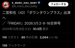 引用元: それでも動く名無し 2025/12/19(金) 09:11:58.87 ID:L8mE+V4m0 最強やん 2: それでも動く名無し 2025/12/19(金) 09:12:49.39 ID:L8mE+V4m0 地上波の上位互換 3: それでも動く名無し 2025/12/19(金) 09:13:48.02 ID:b9oWaujD0 まあLuupのCMに出るのに比べたらマシやろ…