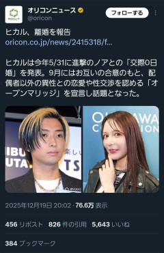 【悲報】大人気YouTuberヒカル、離婚を発表wwww