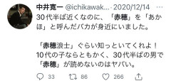 1:5ch名無し民2022/07/02(土) 15:44:26.57ID:5Jn8a7x1p 中井寛一@ichikawakon30代半ば近くなのに、「赤穂」を「あかほ」と呼んだバカが身近にいました。「赤穂浪士」ぐらい知っといてくれよ!10代の子ならともかく、30代半ばの男で「赤穂」が読めないのはヤバい。2020/12/14 22:17:42…