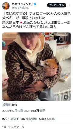 【悲報】中国で人気のインフルエンサー犬、柴犬(日本産)という理由で毒殺されてしまう