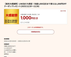 楽天市場の「楽天大感謝祭」、1万3000円以上で使える1000円オフクーポン配布中 20日20時から利用可能
