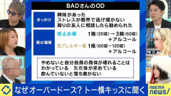 1. 匿名@ガールズちゃんねる トー横に頻繁に出入りし、ストレス解消のためにオーバードーズをすることもあるBADさん。きっかけは、会社の人間関係などのストレスに逃げ場がなく、周りの友人に相談した際に勧められたこと。普段は咳止め薬1箱(20錠)〜3箱(60錠)、抗アレルギー薬1瓶(60〜120錠)をアルコールとともに摂取するという。 BADさんにとって、酒、タバコ、オーバードーズが揃って“本番”であり、「ストレス発散方法がそれになっている」と語る。 BADさんは「やめないと身体が壊れることはわかっている」と自覚しながら、一回に最大300錠を飲んだことがあるそうだ。「一気には飲めないので順番に、それも水ではなくお酒で入れたりする。次の日は二日酔いよりもひどくて、起きられなかったり、一日中昏睡状態だったり、逆にハイの状態のまま2、3日動き回ったりする」。それを踏まえ、「ボロボロに自分の身を削りながら、それでもあがいてもがいて生き抜いている生の実感がある」とした。 2025/12/20(土) 21:53:37…