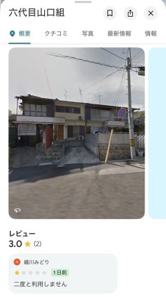 【悲報】山口組の事務所、Googleマップで星1のレビューをつけられてしまう…