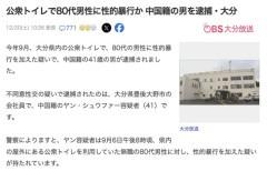 【大分】公衆トイレで80歳男性に性的暴行、中国人(41)を逮捕