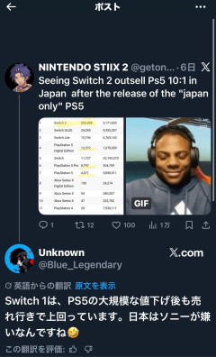 1: mutyunのゲーム+α ブログがお送りします。 ID:jTAZM7X/0 日本限定の値下げ効果なしw Switch2が値下げ後のPS5の10倍売れてるw Switch1にすら負けるw 等々 海外でも日本のPSの人 […]…