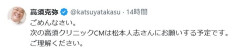 転載元: 征夷大将軍 ★ 2025/12/21(日) 11:10:25.59 ID:MA/eIr2W9 日刊スポーツ [2025年12月21日9時25分] 美容整形外科「高須クリニック」の高須克弥院長(80)が20日夜、X(旧ツイッター)を更新。次の同クリニックCMをお願いする“大物芸人”の実名を明かした。 高須氏は、一部女性ユーザーが「高須克弥先生 CMください」などと投稿したポストを添付。「ごめんなさい。次の高須クリニックCMは松本人志さんにお願いする予定です。ご理解ください」と、ダウンタウン松本人志にCM出演を打診する意向を記した。 高須氏は19日の更新でも、松本人志がBSよしもとの大みそかの緊急特番でテレビ出演することが決まったことなどを報じた記事を添付。「まっちゃんが地上波に帰ってくる。『提供高須クリニック』BSよしもと広告代理店に注文なう」とポストした。 高須氏は、松本が「週刊文春」側との裁判に注力するため活動休止中だった昨年4月、Xに「僕は松ちゃんが復帰したら全力でスポンサーやります」「松ちゃんが復帰したら高須クリニックのCMに使います。約束します。僕はウソをつきません」などと宣言していた。 5: 名無しさん@恐縮です 2025/12/21(日) 11:15:21.92 ID:yP86u1Ki0 イエス!…