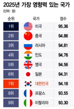 韓国ネットの反応 最近、アメリカのビジネス誌『CEOワールドマガジン』が発表した「世界で最も影響力のある国」ランキングが、韓国国内で大きな波紋を広げています。評価の対象となった190カ国のうち、韓国はなんと7位にランクイン。上位には1位の米国、2位の中国、そして3位から5位にはロシア、インド、イギリスが並んでいます。注目すべきは、隣国の日本が94.31点で6位となっており、韓国(94.18点)とはわずか0.13点の僅差だったという点です。この調査では、単なる経済力だけでなく、政治的安定性、防衛予算、グローバル同盟、さらには文化的な影響力まで多角的に評価されています。フランス(8位)やイタリア(9位)といった伝統的な欧州の強豪国を抑えての7位という結果に対し、「我々がいつの間にそこまでの存在になったのか」と首をかしげるネットユーザーも少なくありません。この記事へのコメントはこちらからお願いします。…