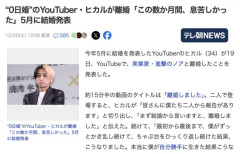 1 : 今年5月に結婚を発表したYouTuberのヒカル(34)が19日、YouTubeで、実業家・進撃のノアと離婚したことを発表した。 ノアも「ヒカルくんはYouTuberとしてはめっちゃすごいし誰よりも尊敬しているけど、旦那としてはマジで向いてないな。ほんまに最下層。経験者として言わせてもらったら、次、ヒカル君に結婚しようとか付き合おうといわれた女の人は、ほんまにちゃんと考えた方がいい。思っている以上に、やばい。マジ、赤ちゃんかなぐらいやばい」とコメント。 3 : 赤ちゃんは可愛いけどね 4 : 可愛いやん…
