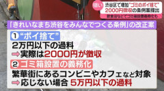 1: ななしさん@発達中 2025/12/21(日) 18:33:40.84 ID:8GJ8PDBg9 東京・渋谷区は来年6月より、ごみのポイ捨てをした人から罰則として過料2000円を徴収すると正式に発表しました。 渋谷区・長谷部健区長 「ポイ捨てごみ対策を抜本的に見直し、『きれいなまち渋谷をみんなでつくる条例』の一部改正を行うこととしました」 渋谷区によりますと、コロナ禍以降、渋谷の街を訪れる人が増加し、渋谷駅や原宿駅周辺の路上でごみのポイ捨てが多いことから、区内でポイ捨てをした人から罰則金として過料を徴収する条例の改正案が区議会で可決・成立しました。 区の指導員などが24時間巡回し、ポイ捨てをした人を発見次第、過料2000円を徴収するということです。 徴収の方法は、現金のほか、電子マネーも検討しています。 また、条例には、渋谷駅周辺など対象地域にあるコンビニやカフェなどの「ごみ箱の設置義務化」も盛り込まれ、設置しない事業者からは過料5万円を徴収するということです。 これらの過料の徴収は、来年6月1日から始まります。…
