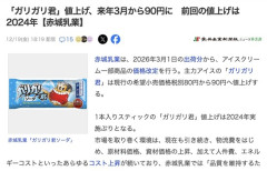 1 : 赤城乳業は、2026年3月1日の出荷分から、アイスクリーム一部商品の価格改定を行う。主力アイスの「ガリガリ君」は現行の希望小売価格税別80円から90円へ値上げする。 1本入りスティックの「ガリガリ君」値上げは2024年実施ぶりとなる。 市場を取り巻く環境は、現在も引き続き、物流費をはじめ、原材料価格、資材価格の上昇、加えて人件費、エネルギーコストといったあらゆるコスト上昇が続いており、赤城乳業では「品質を維持するため価格改定実施を決定した」としている。 続きは↓ 「ガリガリ君」値上げ、来年3月から90円に 前回の値上げは2024年【赤城乳業】 2 : すでに60円じゃなかったのか 5 : そんな…信じてたのに……