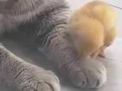 モフ猫さんのそばを離れないヒヨコ。 いつもいっしょピヨ♪ 成長してもこんな感じ……
