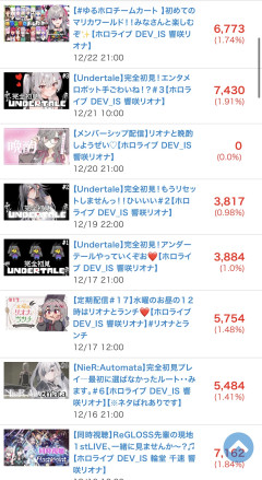 引用元: 130: Vtuberまとめ2025/12/23(火) 11:57:20.05 フログロも結構落ち着いてきたな 登録者 すう 再生数 ニコ 同接 リオナ メンシ リオナ 161: Vtuberまとめ2025/12/23(火) 11:58:08.84 >>130 りおーな強いなショートも回ってるし 163: Vtuberまとめ2025/12/23(火) 11:58:11.33 >>130 同接はヴィヴィだぞ 164: Vtuberまとめ2025/12/23(火) 11:58:17.11 >>130 俺達のりおーな 170: Vtuberまとめ2025/12/23(火) 11:58:26.60 >>130 ちはーやが一番強いと思ったんだけどなぁ 171: Vtuberまとめ2025/12/23(火) 11:58:30.31 >>130 っぱりおーな最強よ 187: Vtuberまとめ2025/12/23(火) 11:59:01.56 >>163 12/22 マリカワールドコラボ最大同接 リオ 6,838 ヴィ 4,67812/6 にじホロエアライダーコラボ リオ 8,461 ヴィ 6,759 192: Vtuberまとめ2025/12/23(火) 11:59:09.73 >>130 ニコってショート再生強いのか そりゃ配信しないわ 198: Vtuberまとめ2025/12/23(火) 11:59:25.03 >>130 ニコの再生数はマジダントツなんだよな 205: Vtuberまとめ2025/12/23(火) 11:59:35.29 >>170 パーティ入れなかったんか? 211: Vtuberまとめ2025/12/23(火) 11:59:42.45 >>187 固定はリオナのほうが多いんやな ヴィヴィは野糞の待機所か 223: Vtuberまとめ2025/12/23(火) 11:59:57.27 >>187 これはFGリーダー 229: Vtuberまとめ2025/12/23(火) 12:00:07.43 >>192 今んとこフログロどころかホロでもトップレベルの月間再生数やでニコたん 238: Vtuberまとめ2025/12/23(火) 12:00:27.24 >>187 りおーな固定増えたな 269: Vtuberまとめ2025/12/23(火) 12:01:10.93 >>229 結局元と同じやり方に落ち着くのな ニコここで配信しないとか同接2000とか書かれてたの認知おかしいアホのレスだったか 336: Vtuberまとめ2025/12/23(火) 12:02:57.16 >>130 リオナ同接強いの? 342: Vtuberまとめ2025/12/23(火) 12:03:05.47 >>130 事実ベースやめてね 妄想の余地をくれ 353: Vtuberまとめ2025/12/23(火) 12:03:23.26 >>336 それでも上がったんですよ! 374: Vtuberまとめ2025/12/23(火) 12:04:05.96 >>336 りおーな3D前に比べてマジで強くなったな 382: Vtuberまとめ2025/12/23(火) 12:04:21.08 >>336 リオナ雑魚で草 391: Vtuberまとめ2025/12/23(火) 12:04:37.46 >>336 印象操作凄いなリオナイト 410: Vtuberまとめ2025/12/23(火) 12:05:12.72 >>336 ヴィヴィ何気に案件で6500出てるのすげぇな…