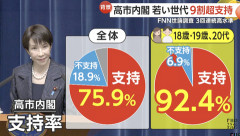 高市内閣の若い世代の支持率は92.4% FNN世論調査