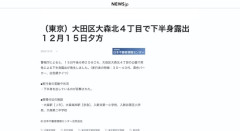 1 : 警視庁によると、15日午後6時20分ごろ、大田区大森北4丁目の公園で男性による下半身露出が発生しました。(実行者の特徴:30~40代、黒色パーカー、白色網タイツ) ■実行者の言動や状況 ・下半身を出しているのが目撃された。 全文はソースで 5 : 大網白里市の手のものじゃ 8 : 画像が無いと判断できない…