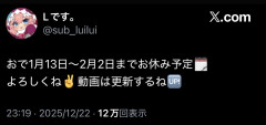 引用元: 257: Vtuberまとめ2025/12/23(火) 16:15:21.61 あかんか 272: Vtuberまとめ2025/12/23(火) 16:16:08.49 >>257 働け! 298: Vtuberまとめ2025/12/23(火) 16:17:22.01 >>257 いいねぇ派閥は長期休暇取れて 327: Vtuberまとめ2025/12/23(火) 16:18:29.80 >>298 またラスベガス豪遊するにぇ♥ 337: Vtuberまとめ2025/12/23(火) 16:18:49.11 >>257 叩かれすぎだから休んだ方がええわ 340: Vtuberまとめ2025/12/23(火) 16:18:59.39 >>257 帰って来なくていいぞ 352: Vtuberまとめ2025/12/23(火) 16:19:31.57 >>257 さよなら 354: Vtuberまとめ2025/12/23(火) 16:19:34.85 >>257 いいよ…
