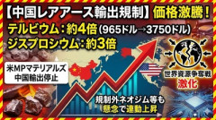 1: 名無し 2025/12/25(木) 15:45:22.38 ID:ReEaR8th0 幅広い産業に不可欠なレアアース(希土類)の価格が高騰している。 圧倒的なシェアを握る中国が4月に輸出規制を発動し、電気自動車などに使われるジスプロシウムは3倍に跳ね上がった。 中国政府は4月4日、ジスプロシウムや永久磁石に使われるテルビウムなど7種のレアアースの輸出規制を発表。 テルビウムの欧州価格も4月1日の1キログラム965ドルから、12月11日には3750ドルに上昇した。 さらに永久磁石に使うネオジムなど輸出規制の対象外の品目も、新たに中国の規制対象に入りかねないといった懸念などから値上がりしている。 Yahoo!ニュース(産経新聞) ■要約 ・中国が4月に開始したレアアース7種の輸出規制により、関連価格が激しく高騰している。 ・テルビウムの価格は約4倍(965ドル→3750ドル)、ジスプロシウムは約3倍に急上昇した。 ・規制対象外のネオジム等も、将来的な規制拡大への懸念から価格が引きずられている。 ・米MPマテリアルズによる中国への輸出停止もあり、世界的な資源争奪戦が激化している。 ■解説 中国が資源を外交上の強力な武器として利用する(経済的威圧)の現実が、改めて数字となって突きつけられた形だ。EVや精密機器に不可欠な素材を特定国に依存し続けることが、いかに日本の製造業にとって致命的なリスクであるかが分かる。価格が数倍に跳ね上がる現状は、もはや一企業の努力で吸収できるレベルを超えており、国家レベルでの対抗策が急務だ。 こうした背景があるからこそ、高市政権が強力に推進している南鳥島沖でのレアアース試掘プロジェクトは、日本の「生命線」を守るための最重要課題と言える。中国が規制によって他国の産業を揺さぶり、自国の優位性を保とうとする戦略に対し、日本は独自の資源確保ルートを構築することで(盾)を持たなければならない。 「資源がない日本」という固定観念を捨て、深海に眠る富を技術力で掘り起こす。この自立への歩みを止めれば、いつまでも隣国の顔色をうかがう歪な経済構造から抜け出すことはできない。経済安全保障を強化し、他国の恫喝に屈しない強い産業基盤を再構築することこそが、次世代への最大の投資となるはずだ。 【海外/米国】「エプスタイン・ファイル」の黒塗りを簡単に暴けることがわかり拡散中 松井秀喜ってヤンキースでどれくらい凄かったの?←「圧倒的に勝負強い打者だった」(海外の反応) 海外「笑った!」日本の焼き餃子に敗北した中国の次の作戦に海外が大騒ぎ…