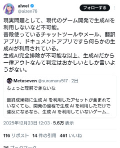 1: 2025/12/24(水) 17:43:30.00 ID:DBxTspsj0EVE GOTY剥奪は不当だと怒りを表明 なお、77%のメーカーが生成AIを使った開発へ移行済みです クラウドエース調査、国内ゲーム開発企業の 77% が生成 AI を活用 ―クラウド選定では性能・コストにくわえ、データ分析や AI 連携など将来性を見据えた視点も明らかに― 公開:2025年07月09日 プレスリリース クラウドエース株式会社(本社:東京都千代田区、代表取締役社長:青木 誠)は、国内のゲーム開発企業に所属するエンジニア 102 名を対象に、「ゲーム開発企業のクラウドインフラ選定および生成AI活用に関する実態調査」を実施しました。本調査により、ゲーム開発の現場におけるクラウド サービスの利用実態や技術課題、そして急速に普及する生成 AI の活用状況が明らかになりました。 調査結果サマリー クラウド利用は AWS (50%)、Google Cloud (46%)、Azure (40%)がトップ 3 を占め、マルチクラウドが主流に。 開発現場の 3 大技術課題は「トラフィック急増への対応」「大規模データ分析」「コスト最適化」。 77% の企業が生成 AI を「利用している」と回答。開発プロセスの変革が加速。…
