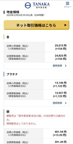 1: 稼げる名無しさん :2025/12/24(水) 12:38:14.95 ID:9AQd5p1p0 1001: 以下名無しさんに代わりまして管理人がお伝えします 1848/01/24(?)00:00:00 ID:money_soku今年の金は圧倒的な上昇。来年も人気は続きそう打と見ているお。 今のところ特に下がる理由がないのがな。 各国が再度利上げに舵を切り始めたら注意しよう。 [スペランツァ] K24 純金 コイン ペンダント ウルフ & コンドル 1/25oz ゴールド K18枠 刻印入り ユニセックス 価格: 66800円 (2025年12月25日調査価格) ポイント: 2,004 (3%)pt Amazonで見る Powered by 稼げるまとめ速報 [スペランツァ] K24 純金 コイン ペンダント ウルフ & コンドル 1/25oz ゴールド K18枠 刻印入り ユニセックス の詳細はこちら…